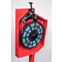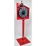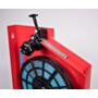 Profesjonalny metalowy stojak do ciężarków klejonych rozwijanych z rolki w kolorze czerwonym.
