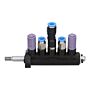 Pneumatyczny rozdzielacz odpowiedzialny za sterowanie dopływem powietrza do zbijaka stopki oraz układu pompowania koła. Umożliwia precyzyjne działanie obu funkcji przy jednym układzie sterowania.