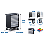 Zestaw składający się z wózka warsztatowego, 3 tacy narzędziowych 3/3 z pianki o wysokiej wytrzymałości (wymiary 567 x 408 x 32 mm)