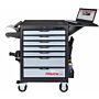 Wózek narzędziowy z zestawem 6-ciu wkładek narzędziowych, zawierających 291 narzędzi ręcznych przeznaczonych do prowadzenia prac serwisowych przy samochodach ciężarowych.